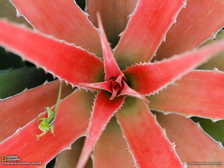 我在古巴-亞歷杭德羅·德洪堡國(guó)家公園看一棵菠蘿植物時(shí),驚訝地發(fā)現(xiàn)這只小蜥蜴。