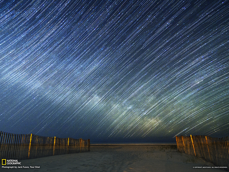 這張照片攝于4月19日,地點(diǎn)是在美國(guó)新澤西的斯特拉斯米爾,這些星軌顯示銀河從大西洋上升起。