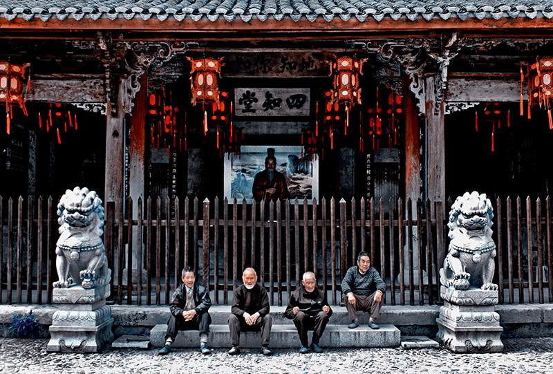 天臺縣南皇古道邊有一座保存完好的名叫“四知堂”的古宗祠,村里遇上紅白喜事,宗祠前院不僅是傳統(tǒng)的聚集活動地,也是村里大小事務(wù)的議事場所。圖為宗族村民在宗祠前暖陽。