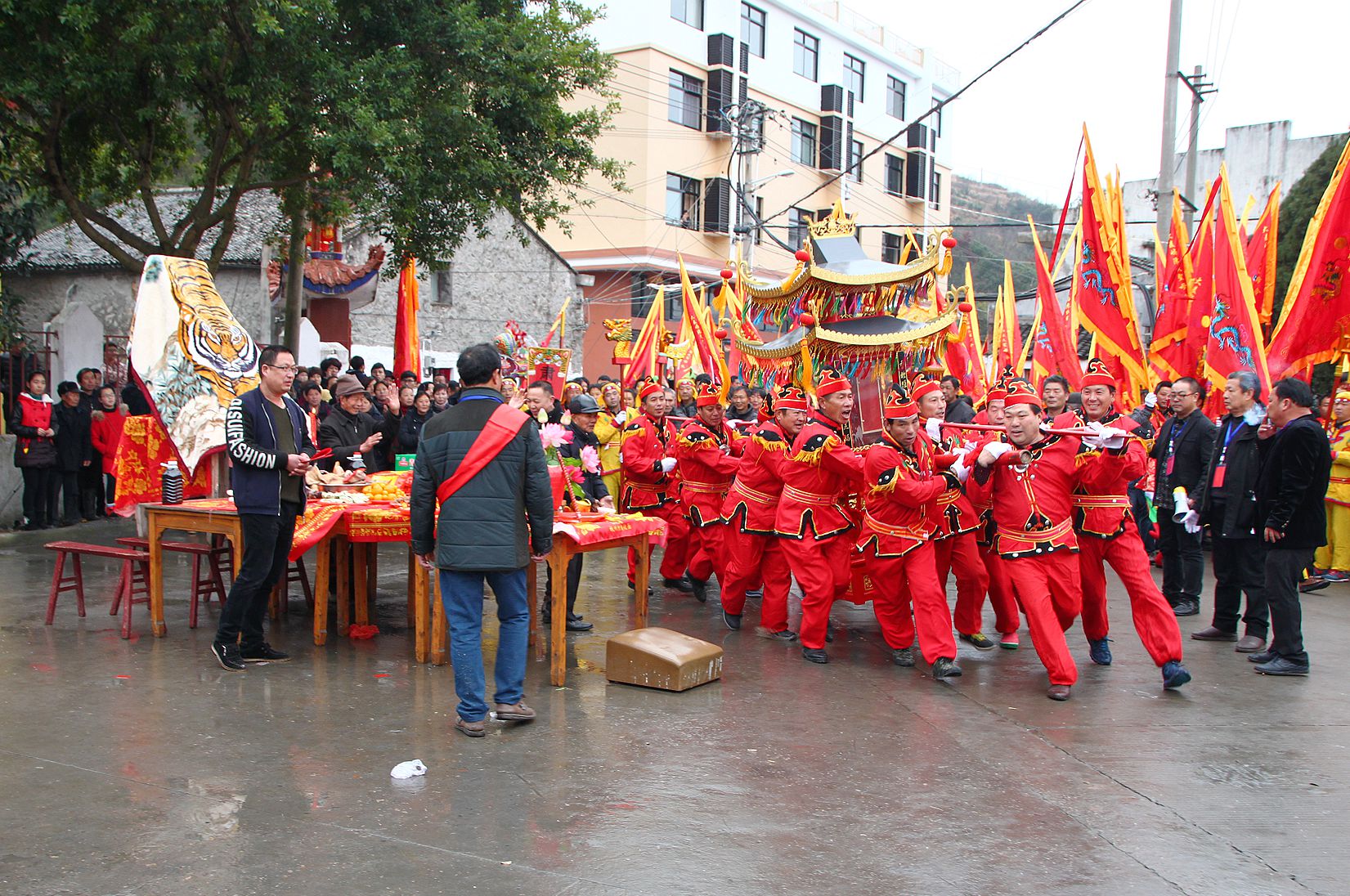 返回頂部>> 照片說明: 2015年2月28日,玉環(huán)大麥嶼街道大麥嶼社區(qū)彩旗飄揚(yáng),人頭攢動,人們正在等待活動的開始。