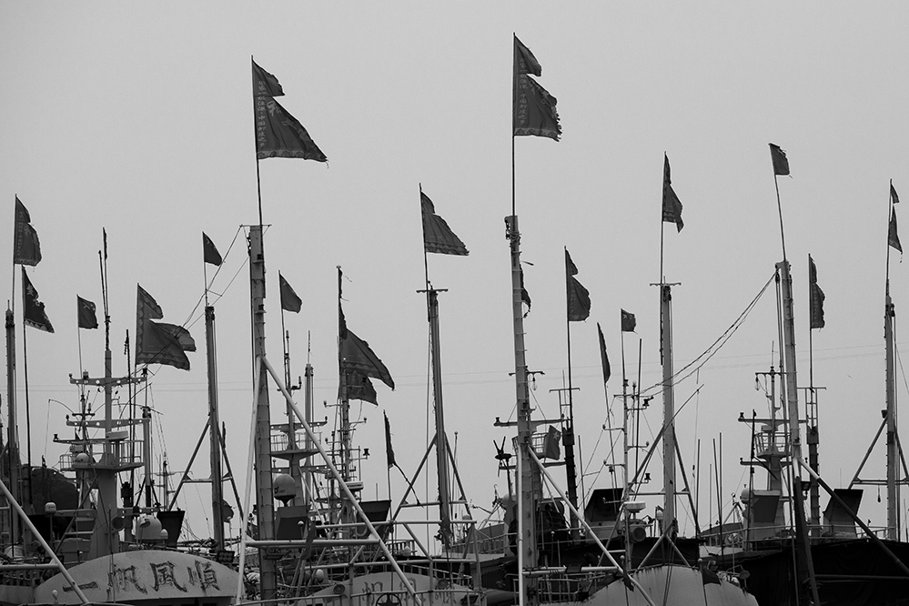 遠海作業(yè)除了酷日無處可躲,船上的旗幟都被猛烈的海風吹破。2020.4,蒼南