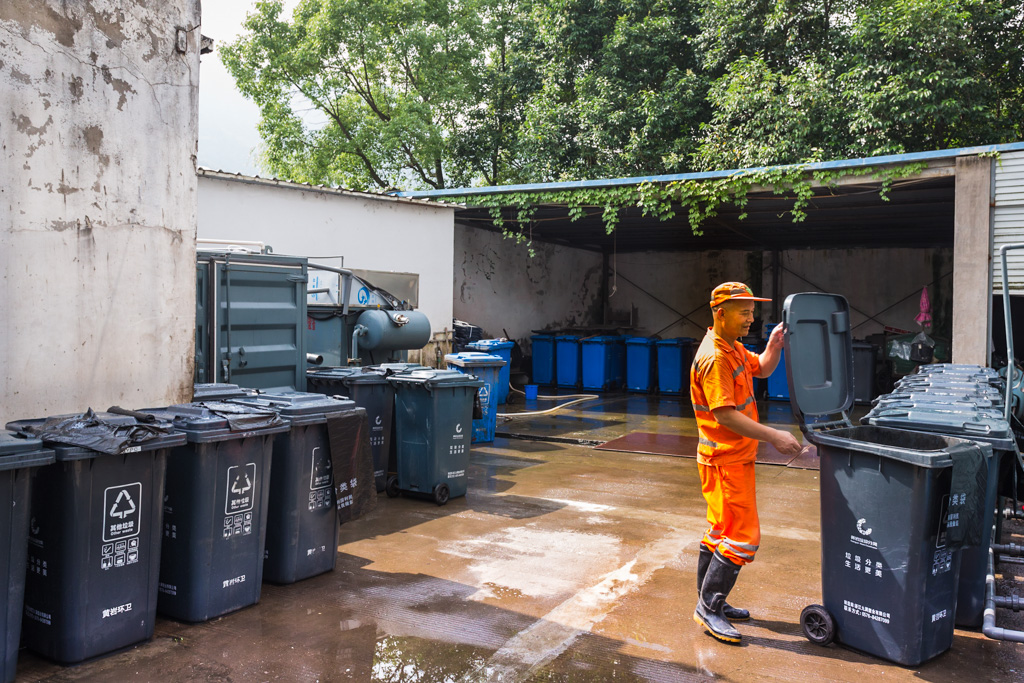 作品介紹: 這是一位垃圾中轉(zhuǎn)站的清潔工,負(fù)責(zé)轄區(qū)內(nèi)的垃圾桶回收后的清潔工作,使垃圾桶在輪換使用中保持整潔的面貌。