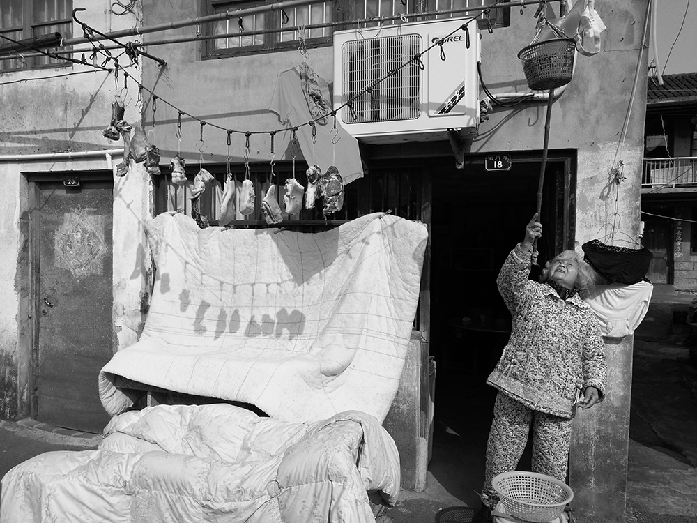(組照十二)2017年2月,衙門巷18號,冬日暖陽下,衣服、被子、臘肉一起拿出來曬曬。