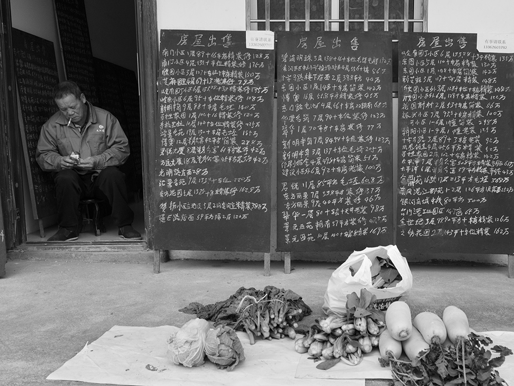 (組照十七)2019年4月,光明路上的一家房產(chǎn)中介所,還放著不少時令蔬菜在售賣。