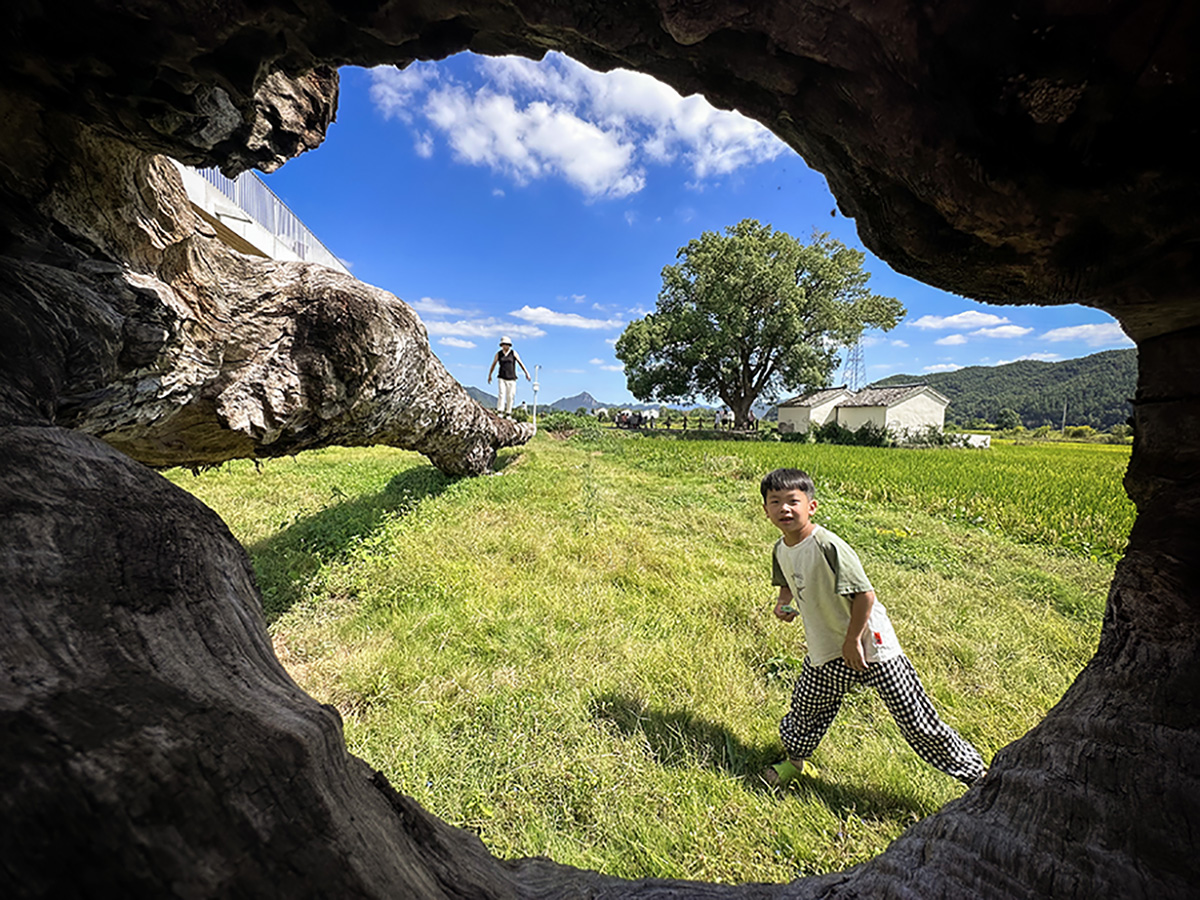 作品介紹: 《童夢翠章》展現(xiàn)孩子于樹洞間,象征自然與藝術(shù)的交融。背景稻田、天空、山巒和諧寧靜,描繪出鄉(xiāng)村童年的夢想。魚眼鏡頭下的夢幻視覺,強化了藝術(shù)感染力,彰顯對自然和藝術(shù)的熱愛與探索。