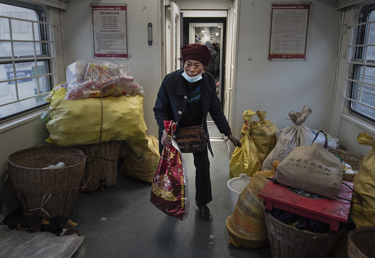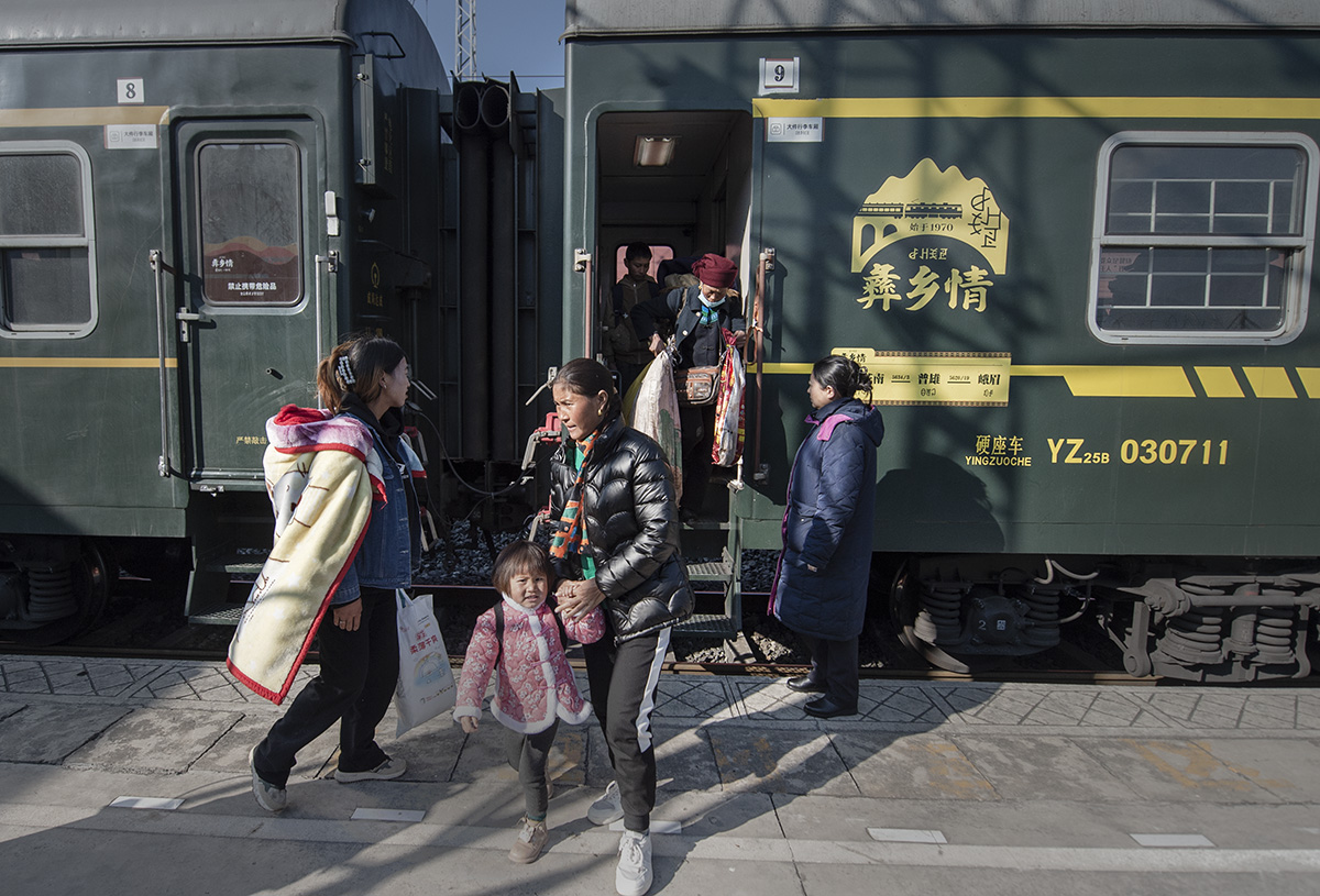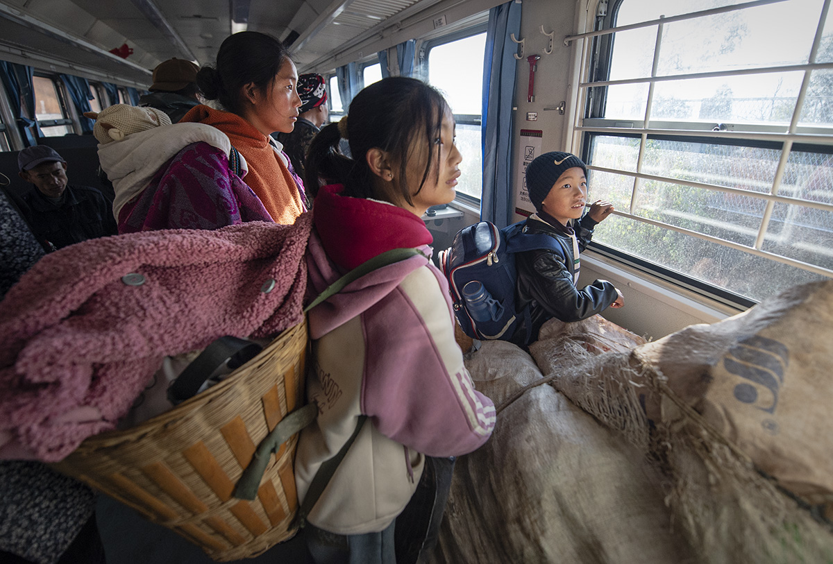返回頂部>> 照片說(shuō)明: 近年,國(guó)家加大了對(duì)大涼山彝族同胞的支持力度,開(kāi)通了專用的扶貧列車線路。作品展示了彝族同胞日常在扶貧列車上的場(chǎng)景。
