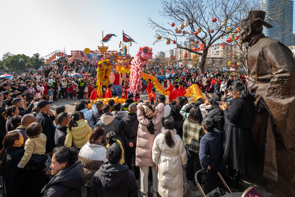 2024年2月10日拍攝于臺州市黃巖區(qū),西橋亦稱五洞橋,始建于宋朝,至今已有700多年的歷史。經歷過風風雨雨的西橋,今日用龍騰獅舞的歡暢迎來了繁榮昌盛的盛世。