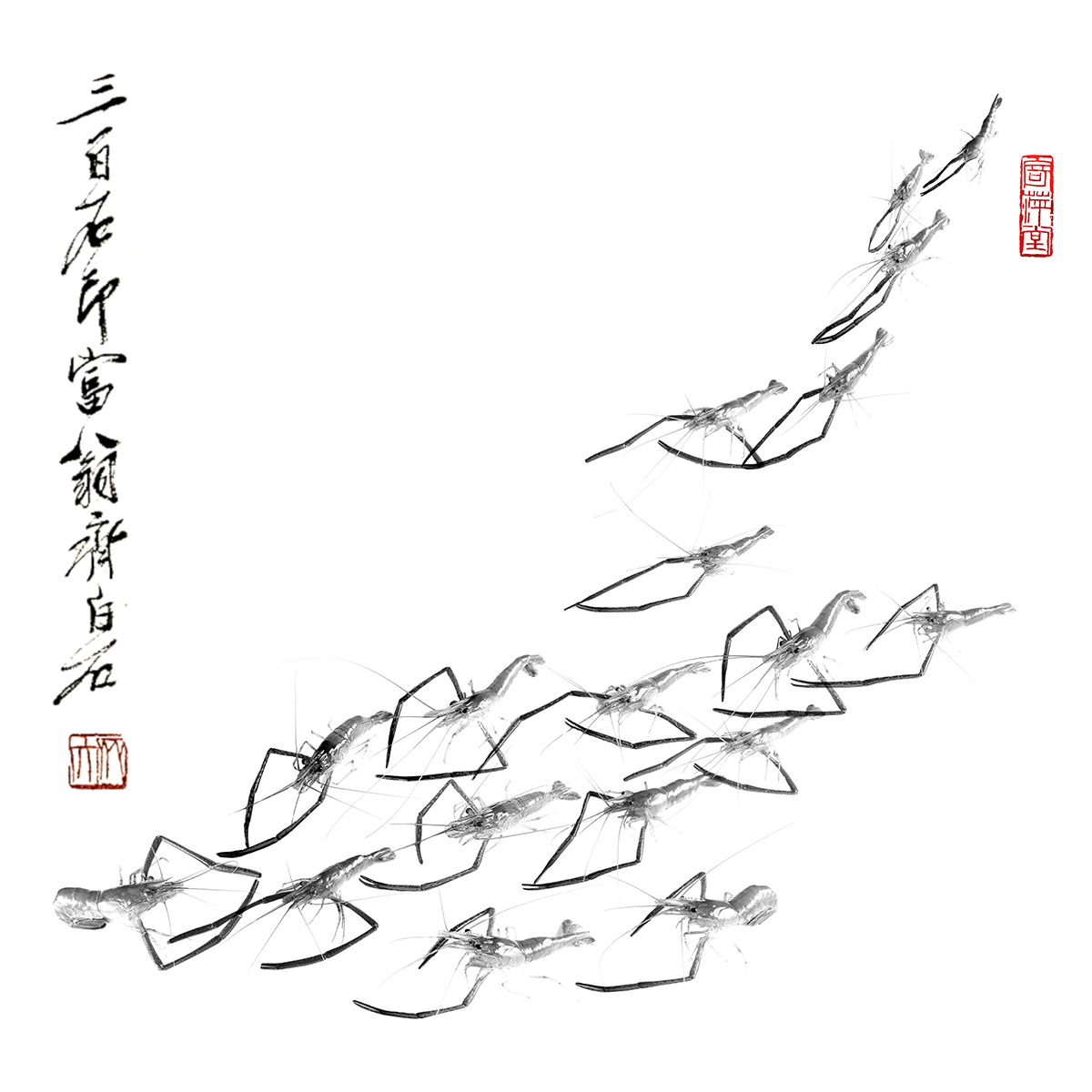 模擬齊白石蝦作,拍攝活蝦后期制作而成。