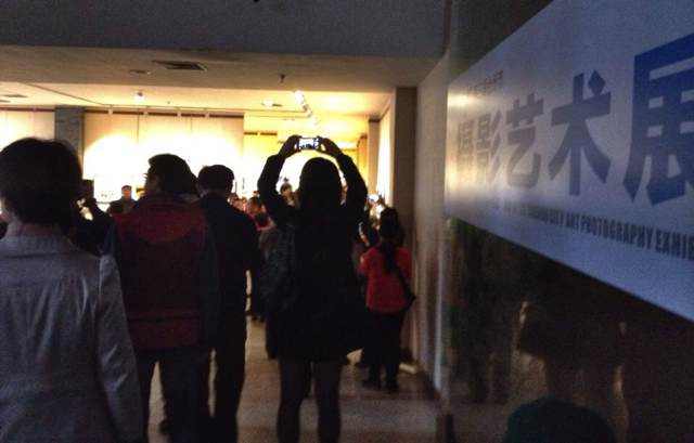 開展當天一位影友拿手機記錄盛況。2014年11月8日攝于臺州書畫院