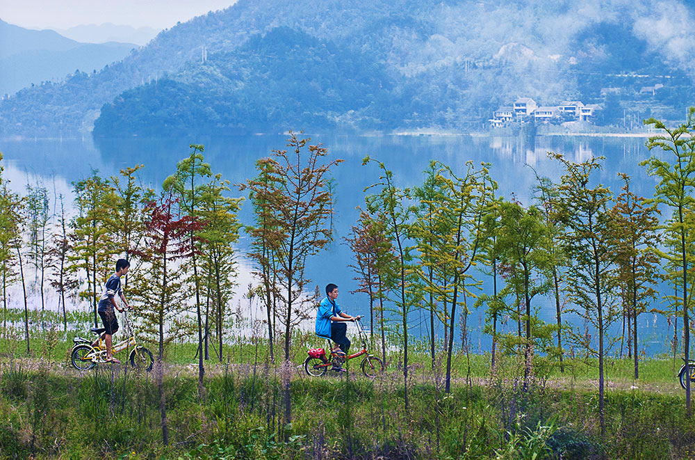 長潭水庫的沿湖道路早已成為人們健身的好地方, 有人稱她為"綠色之路", 也有人稱她為"綠色氧吧"