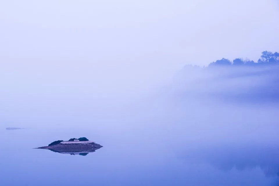 湖漫晨霧縹緲,如若仙境。