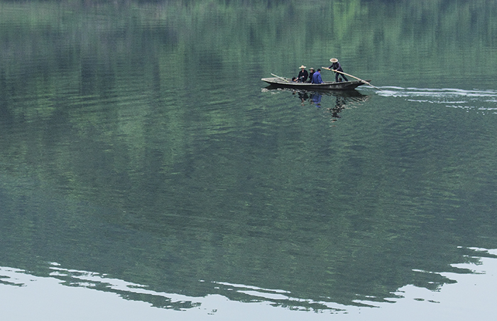 碧波蕩漾,一葉小舟劃破水面,庫區(qū)農(nóng)民開始新的一天......