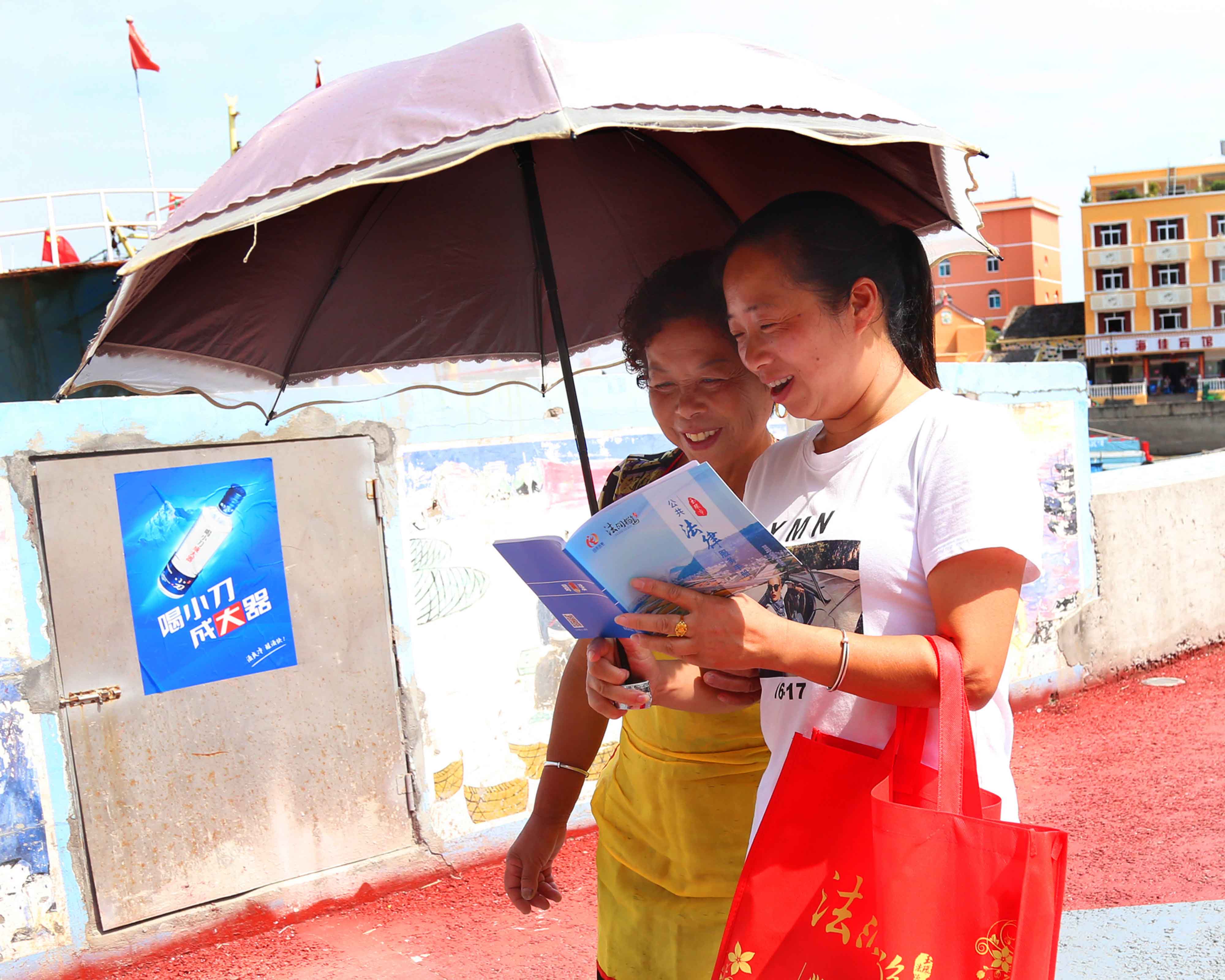 玉環(huán)司法局一行20來人坐船渡海送法到雞山島,深受海島人民的歡迎。