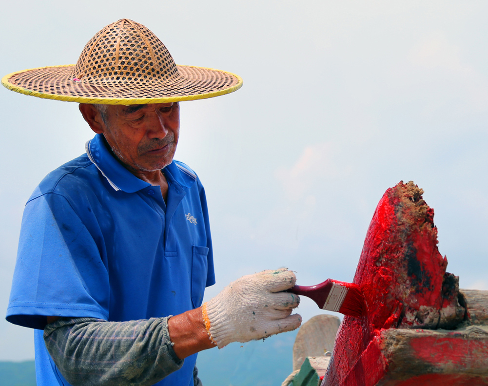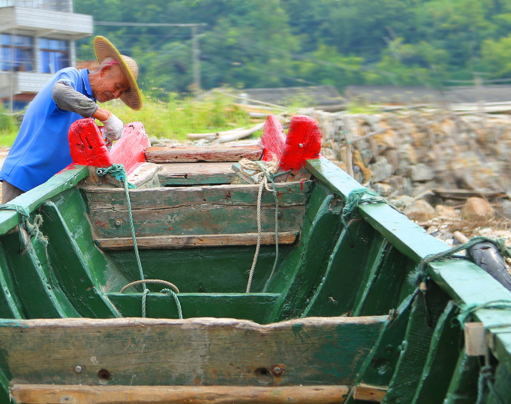 查漏補洞后的小木船,主人為其經(jīng)久耐用,運用彩色紅綠漆給油漆一新