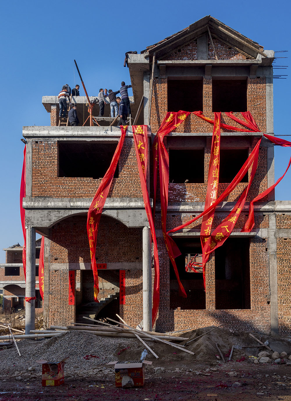 作品介紹: 實(shí)施鄉(xiāng)村振興,建設(shè)美麗家園。仙居縣雙廟鄉(xiāng)公平村堅(jiān)持政府支持,農(nóng)戶(hù)自愿,統(tǒng)籌規(guī)劃,經(jīng)濟(jì)實(shí)用原則,推進(jìn)村莊住房改造,拆除破舊危房,建造生態(tài)宜居住宅。圖為該村應(yīng)錦業(yè)戶(hù)在建造新房上梁蓋頂。