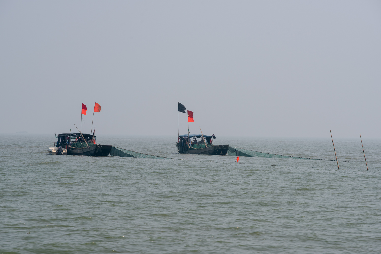 返回頂部>> 照片說(shuō)明: 大網(wǎng)捕魚是由兩艘船牽引的。