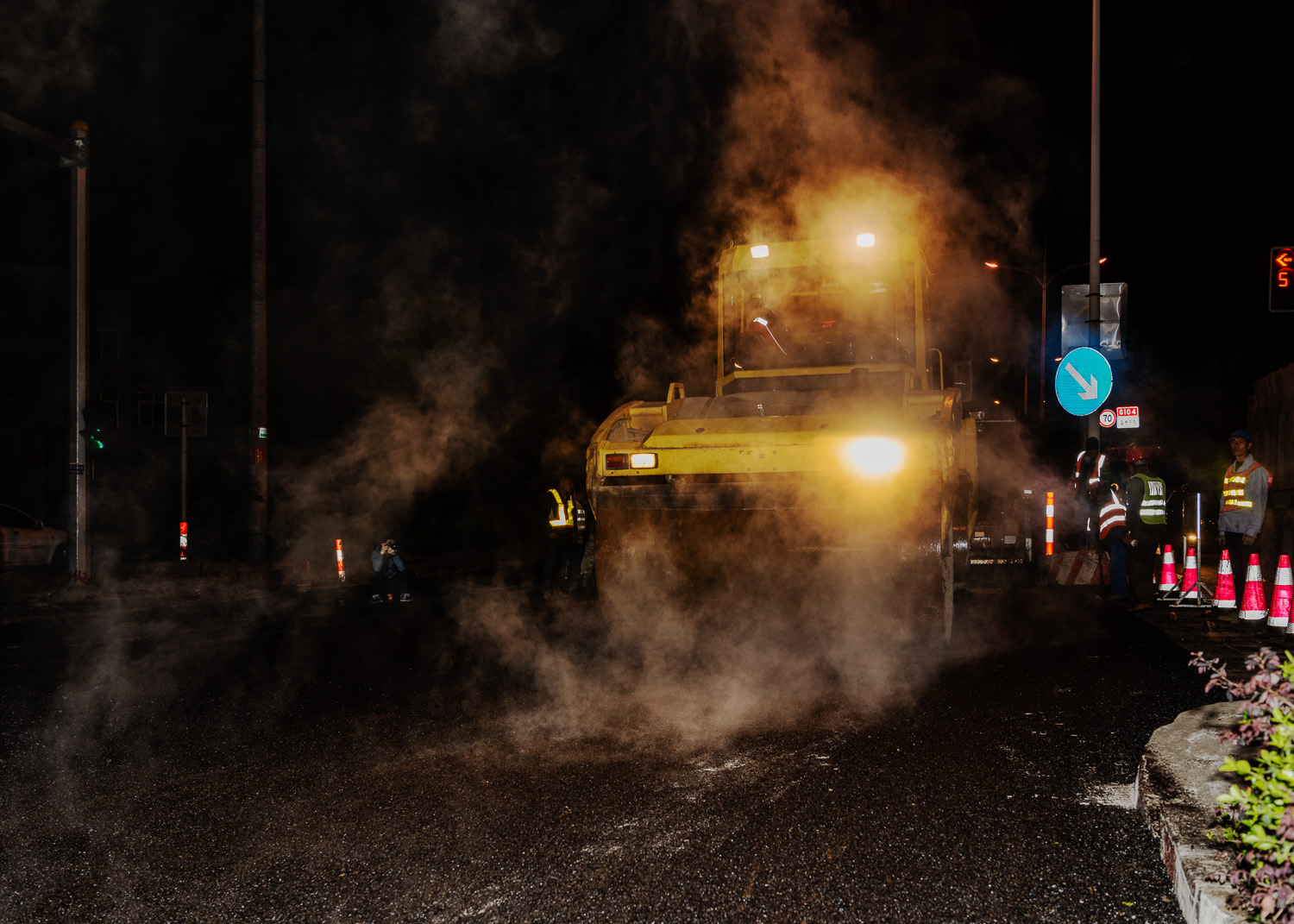 作品記錄養(yǎng)路工人夜以繼日輪班工作,為道路交通付出自己辛勤的汗水。