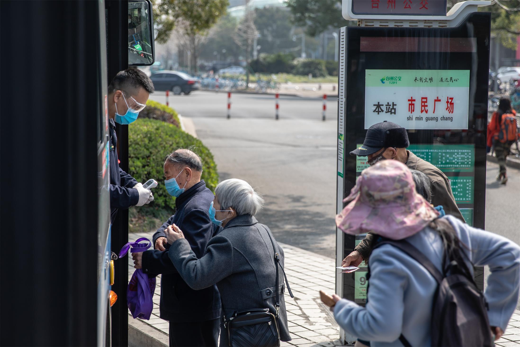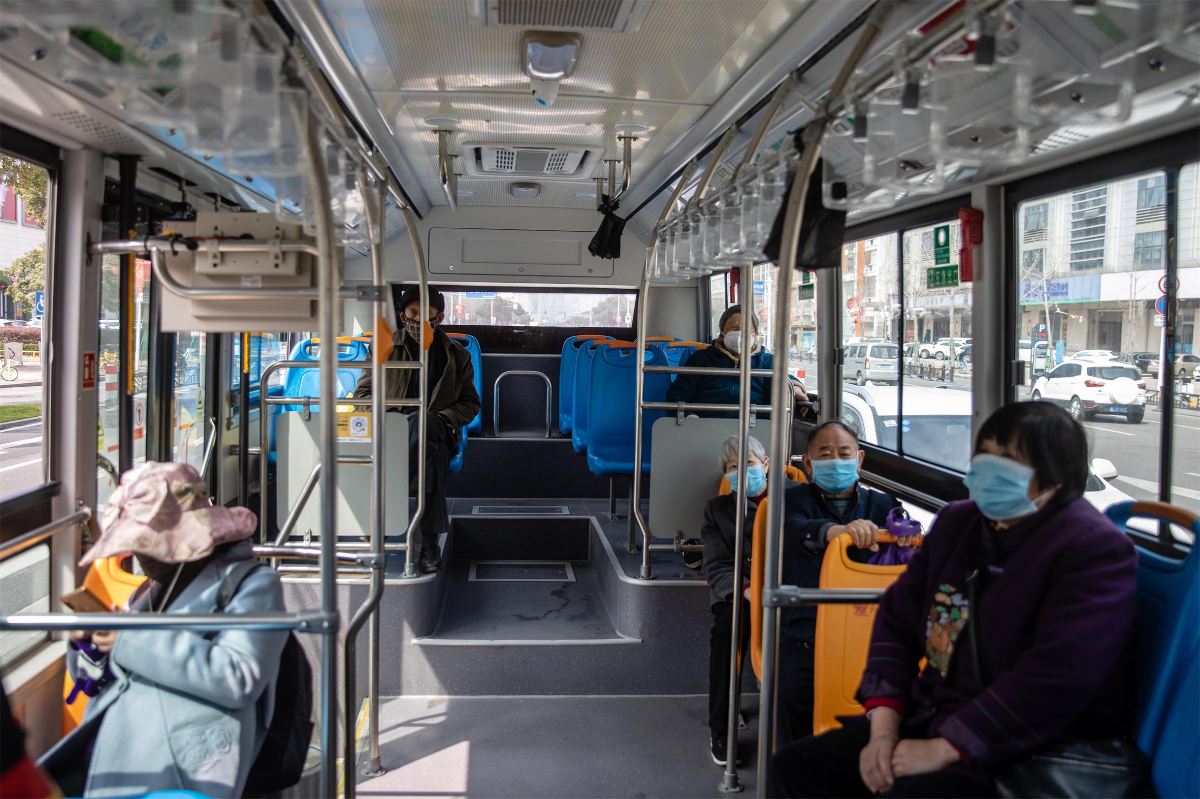 組圖為3月11日,現(xiàn)階段每輛運營公交車上均配備一名防疫安保專員,上車乘客須佩戴口罩,并配合防疫安保專員做好體溫測量,嚴禁未戴口罩及明顯發(fā)熱、咳嗽人員上車。