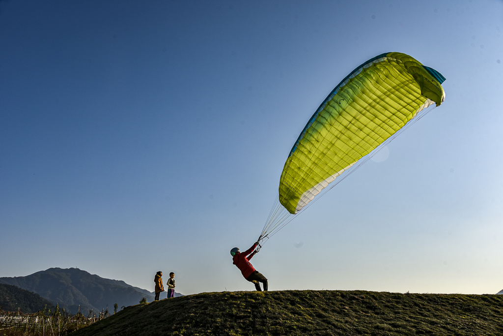 返回頂部>> 照片說(shuō)明: 作品名:夢(mèng)想起航,時(shí)間:2019年12月7日,地點(diǎn):浙江省瑞安市曹村鎮(zhèn)東岙村,說(shuō)明:一位玩家正在玩滑翔傘...