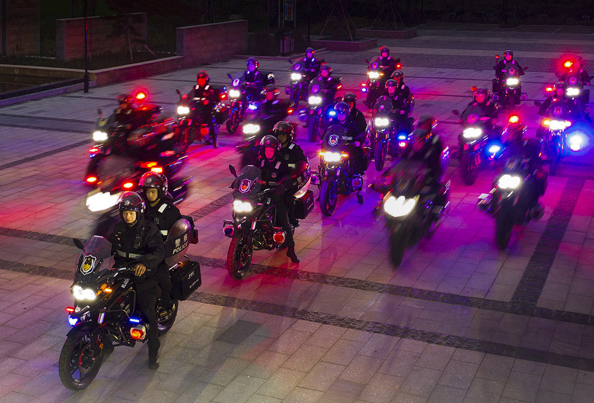 2020年1月13日晚,根據(jù)上級統(tǒng)一部署開展“平安海寧”城鄉(xiāng)防控日活動,巡特警大隊摩托化巡邏隊出發(fā)上街巡邏,增強群眾的安全感。