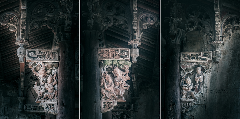 大殿石柱三面鑿刻的12幅楹聯(lián),向人們敘述著陳氏家族曾經(jīng)的輝煌與榮耀。