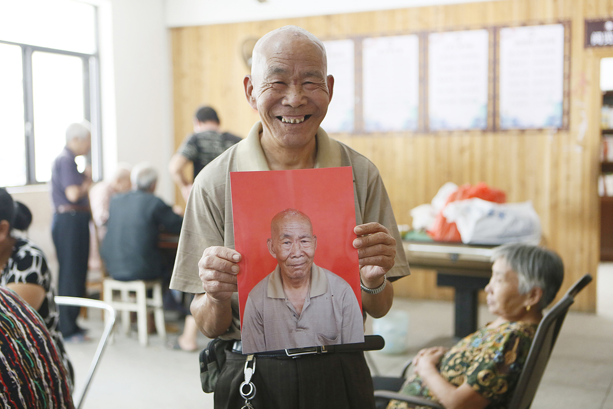 作品介紹: 在志愿者的幫助下,下漲村的老人們與自己的肖像合個(gè)影,格外高興。