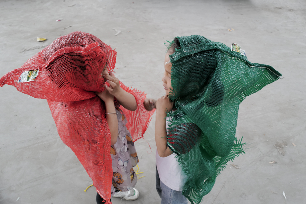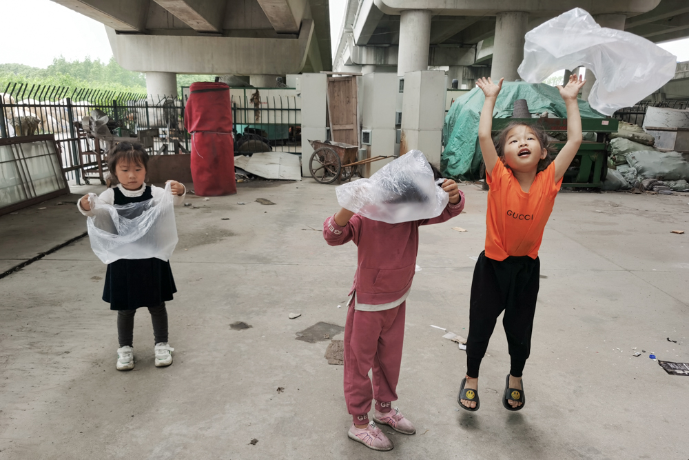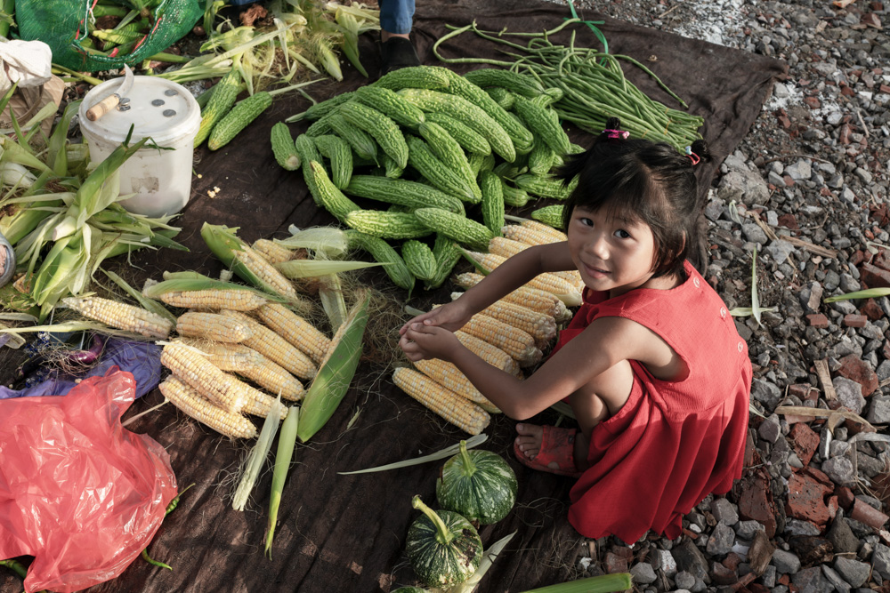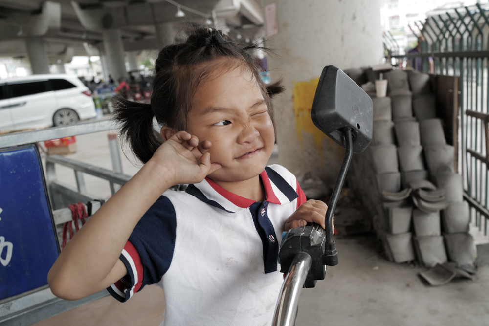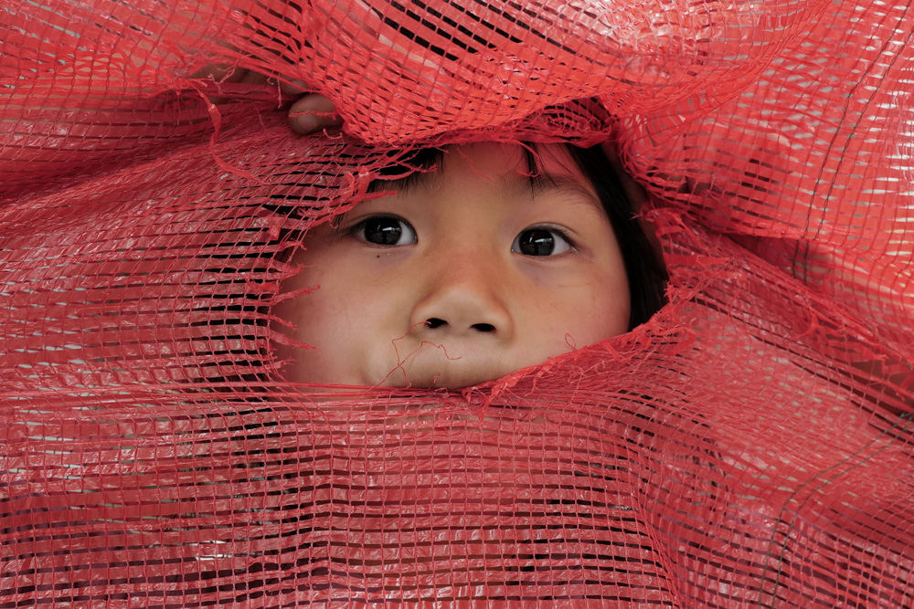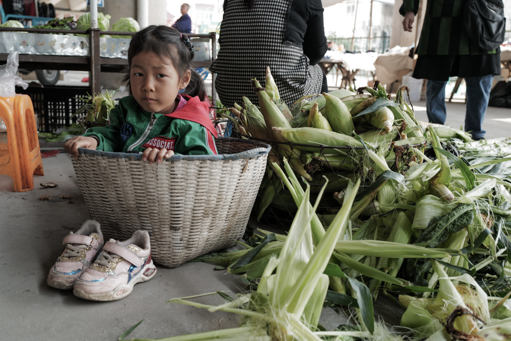作品介紹: 有一群以趕集為營生的外地人,他們早上天沒亮就起床,載著菜帶上還沒睡醒的孩子,來到菜場擺攤,在空地上鋪上紙板、木板供孩子們休息。孩子們一起玩耍,塑料袋、網(wǎng)袋、木棍、繩子、蔬菜等都能成為她們的玩具;黃瓜、西紅柿是她們的零食,小女孩們也愛臭美,當我拿起相機,她們就會擺起剪刀手。菜場里有她們的歡歌笑語,也有她們的孤獨沉默。她們也是父母的寶,父母們不愿與孩子分開,所以不怕辛苦都隨身帶著。