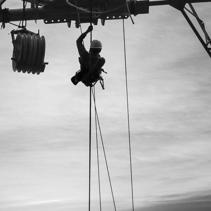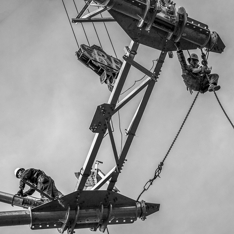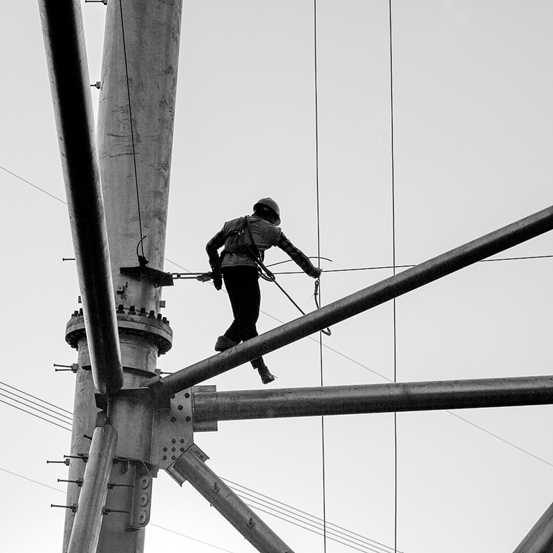 為了安全、優(yōu)質(zhì)的完成整個施工任務,技術(shù)工人們聚在施工現(xiàn)場一起認真研究施工圖紙制定作戰(zhàn)方案;根據(jù)確定的施工方案工人們進行放置牽引線并在泥濘的山坡上艱苦地工作著;為了能夠?qū)⒉鹕⒘说脑O備在高山施工現(xiàn)場安裝,他們不畏艱險肩扛人拉齊心合力把設備運往制定位置艱辛安裝;同時,邊施工邊測繪。尤其讓人感動的是他們矯健的登塔雄姿和他們在高塔之巔形成的“空中圓舞曲”;還有他們在高塔之上行走如履平地,高空升塔齊心協(xié)力,高空施工膽略過人有條不紊——高空飛人、懸掛施工、高空下滑等等雄姿充分體現(xiàn)了我們新一代電力工人高超技能和膽略!