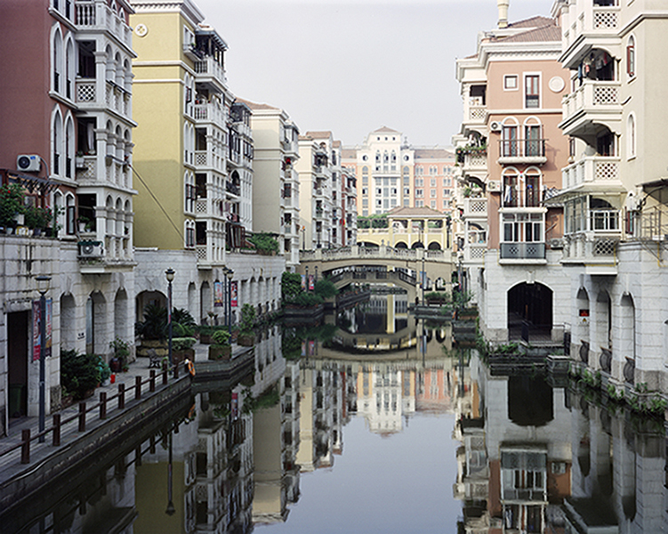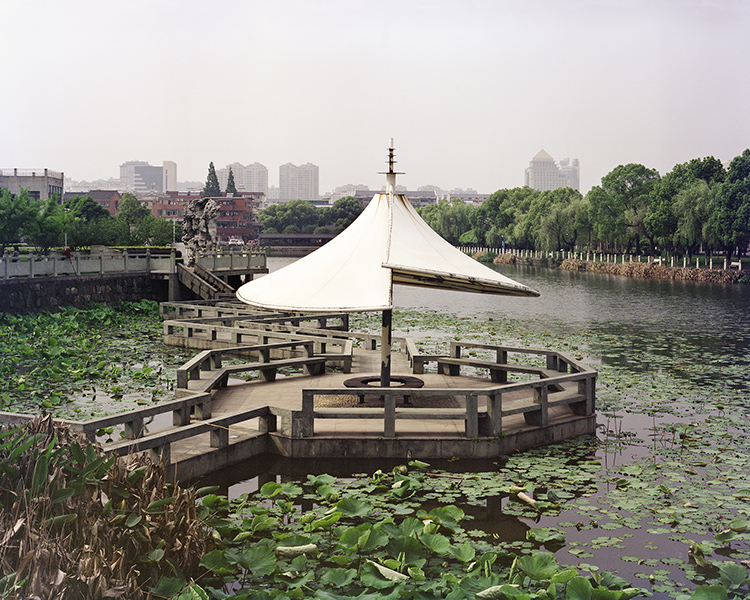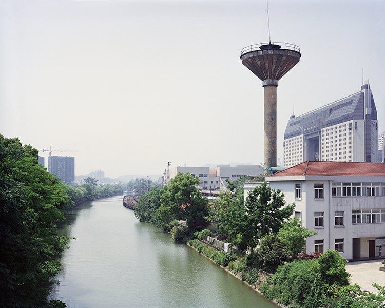 所以,我開始關(guān)注城市里的各種水系,思考如何用不同的呈現(xiàn)方式來反映人工建筑或者人為改造慢慢破壞河流的現(xiàn)象。按圖索驥,我特意尋找那些河流被堵截、被侵占的遺留痕跡,甚至覺得具有異物感和不適感的地方,然后用4×5大畫幅相機(jī)拍攝下這些支流以及周邊嬗變的場景。取景框里看河流,發(fā)現(xiàn)山水還在,卻早已被悄然改變。也正是驚嘆于這種巨大的變化,讓我有了持續(xù)拍攝的源動(dòng)力。