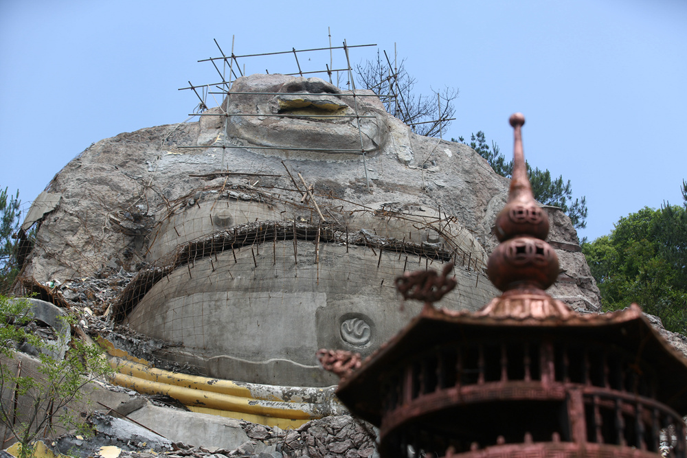 作品介紹: 佛的形象,不言不語,也了然于心。我們常說“悟佛之言,定要行佛之行”,佛者,覺也,法者,正也,佛若不守法,自當棄之。這座高大的浙中大佛,建于上世紀九十年代,經(jīng)歷蒼茫歲月。與青山環(huán)繞的自然美景顯得格格不入,在這個“綠水青山就是金山銀山”的新時代,生態(tài)不容破壞,景觀建筑更要有法可依,我記錄下這個瞬間,是致敬法治中國下執(zhí)法必嚴,違法必究的堅定決心。