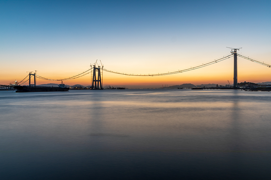作品介紹: 1、《在建中的溫州甌江北口大橋》拍攝于2017年7月-2021年8月黃華。是世界上首座三塔四跨雙層鋼桁梁懸索橋,北塔即是大橋標(biāo)志性三塔中的一座,建在甌江北岸(樂清黃華),塔身呈H形,高度為137米。甌江北口大橋起于樂清黃華、終于靈昆島,項(xiàng)目于2016年開建,全長約7.9公里,為國內(nèi)首座大跨度高速、國道兩用懸索橋,也是國內(nèi)首次在項(xiàng)目全壽命周期應(yīng)用BIM技術(shù)的橋梁工程。圖片紀(jì)實(shí)了大橋施工過程不同的施工進(jìn)度的蝶變。
