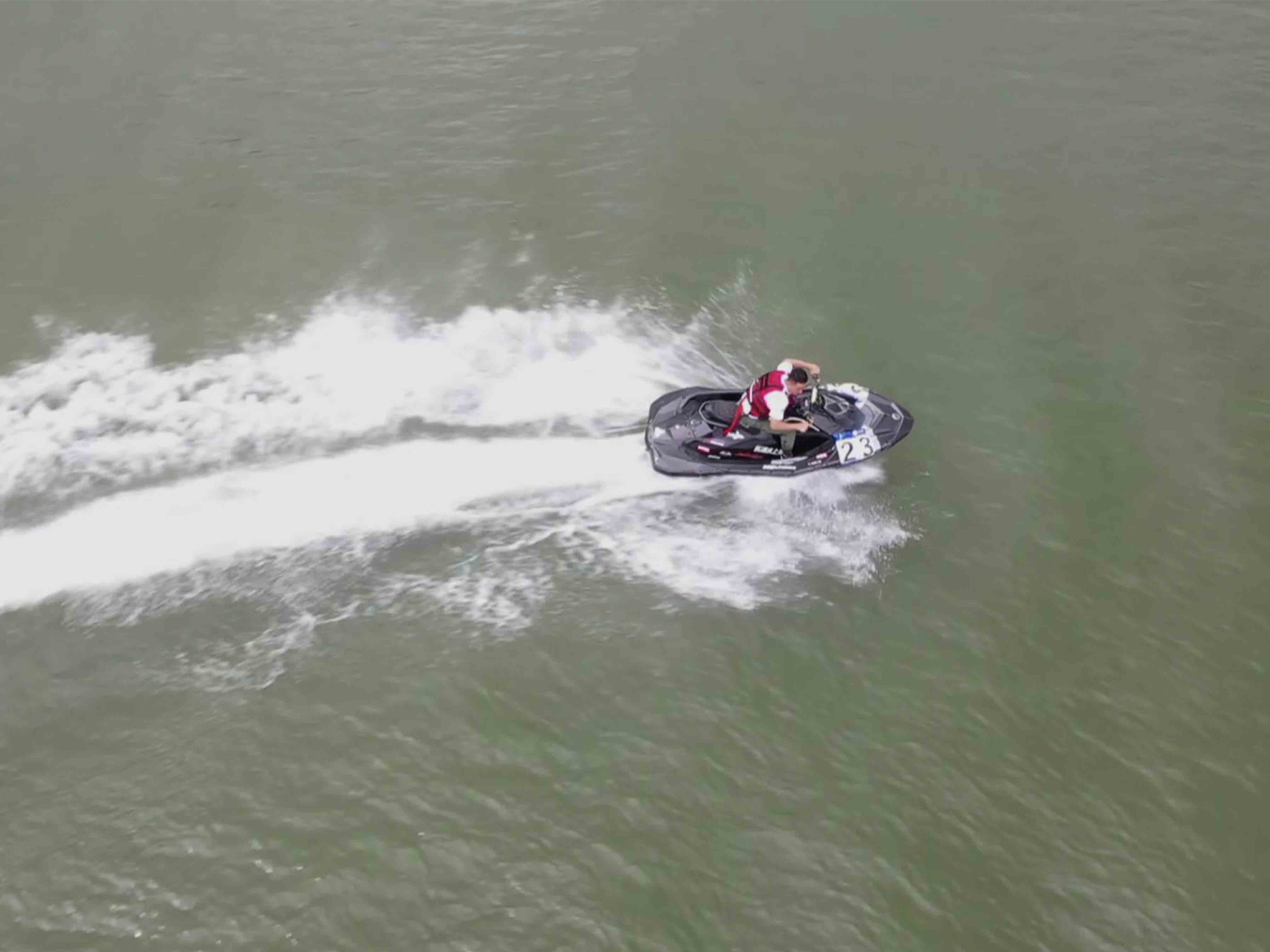 運(yùn)動(dòng)員給自己的摩托艇添加燃料
