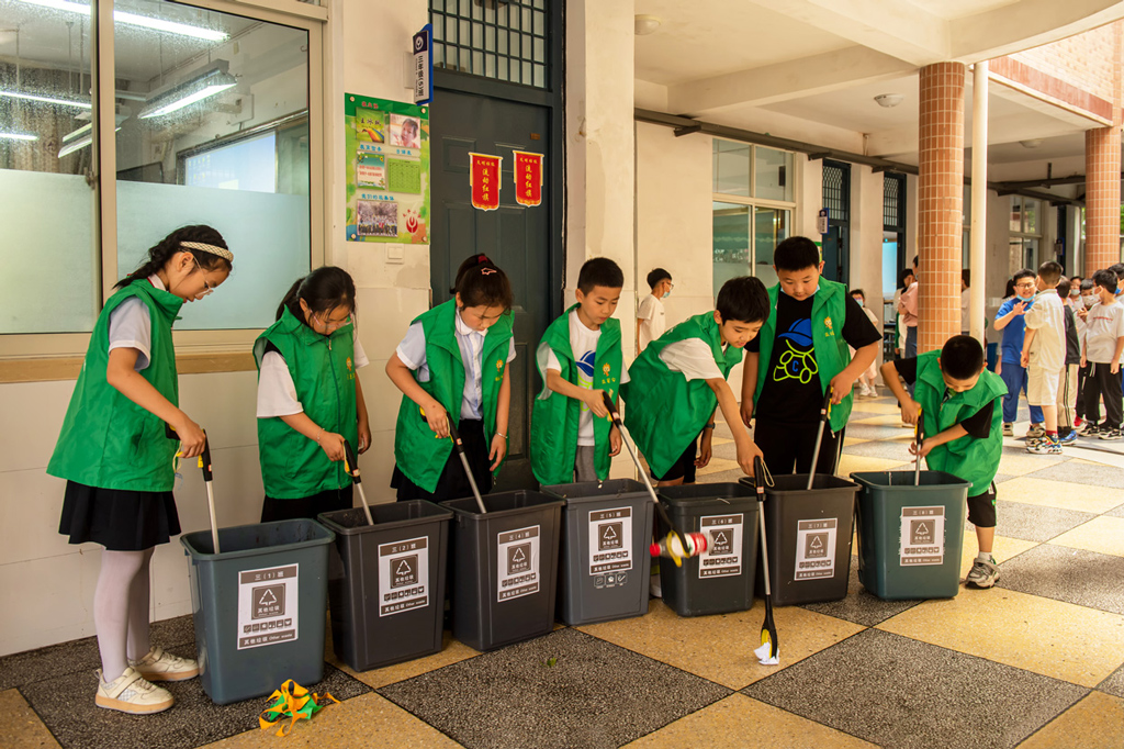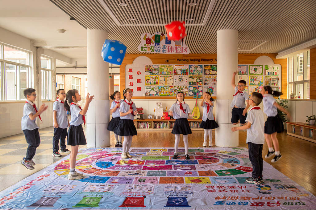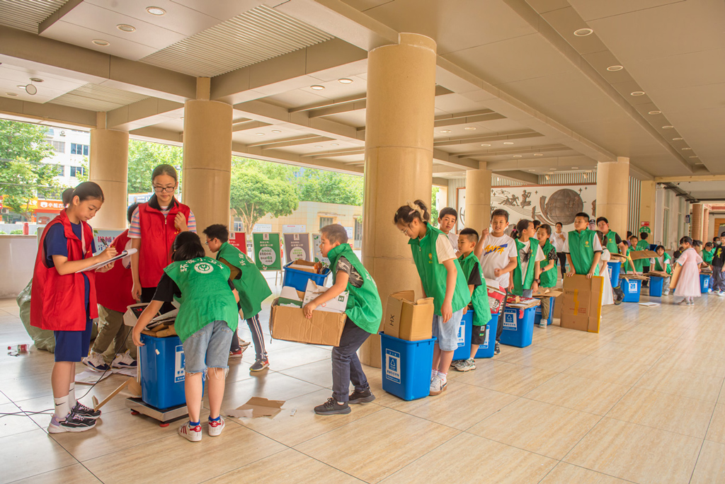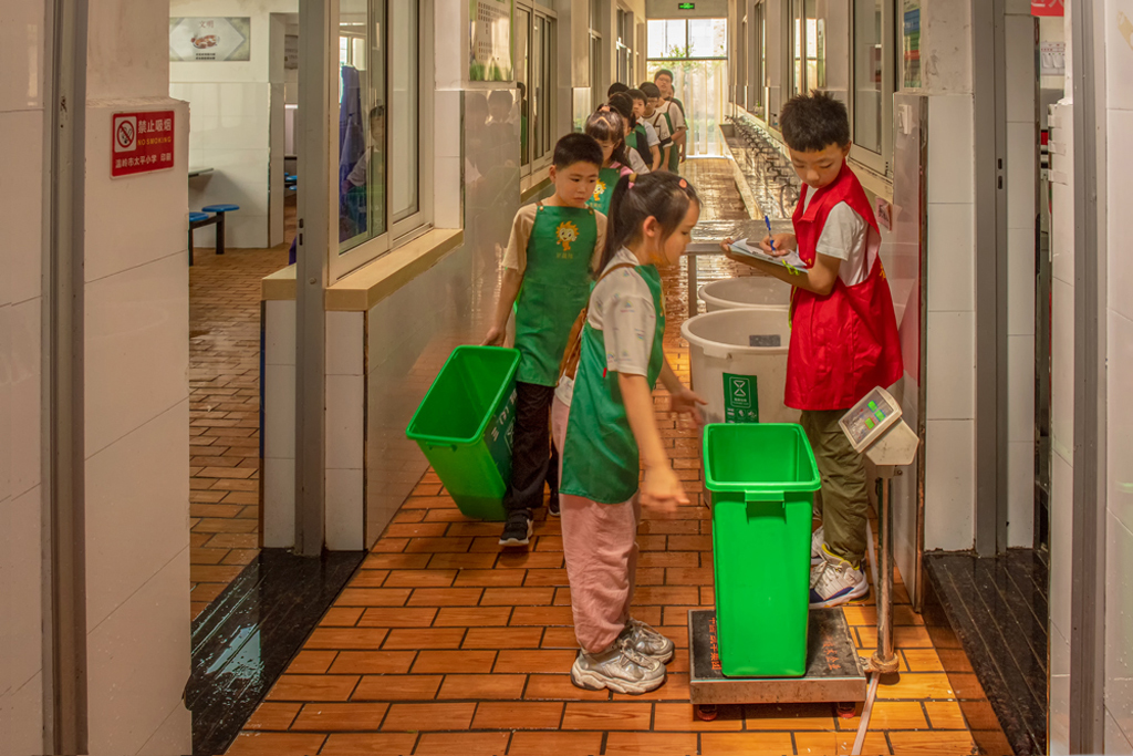 溫嶺市太平小學(xué)從2015年開始至今把垃圾分類行動進(jìn)入常態(tài)化,同時(shí)組織了環(huán)保小衛(wèi)士和就餐管理員二支主力軍,在垃圾分類中發(fā)揮了積極作用,環(huán)保小衛(wèi)士們通過專業(yè)的培訓(xùn),每周定時(shí)將自己班里的廢紙拿到指定地方進(jìn)行稱重回收。小衛(wèi)士每天對各班檢查垃圾分類情況,大大推動了所有學(xué)生垃圾分類意識.。 就餐管理員每天就餐后將班級里的剩菜剩飯拿到食堂稱重記錄,并有專門獎(jiǎng)勵(lì)制度,有效地推進(jìn)了光盤行動的落實(shí)。學(xué)校還有專門的垃圾分類體檢區(qū),有學(xué)生們喜歡的飛行棋套圈圈等與垃圾分類相結(jié)合,寓教于樂,太平小學(xué)垃圾分類推進(jìn)之后,幾年來在臺州市的生活垃圾專項(xiàng)考核中均被評為綠榜單位。