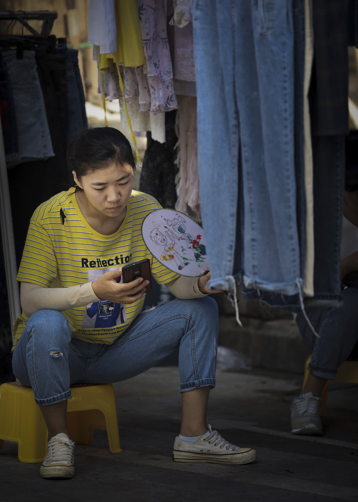 《忙里偷閑》 早市即將結(jié)束,忙碌了一上午的大姐也終于可以休息一下