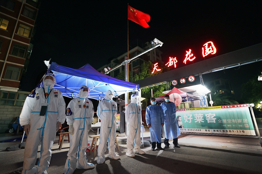 4月28日,天臺新冠疫情暴發(fā),全市2000多名公安民警支援天臺,24小時管好各個小門,確保轄區(qū)有序抗疫,并取得明顯成效。