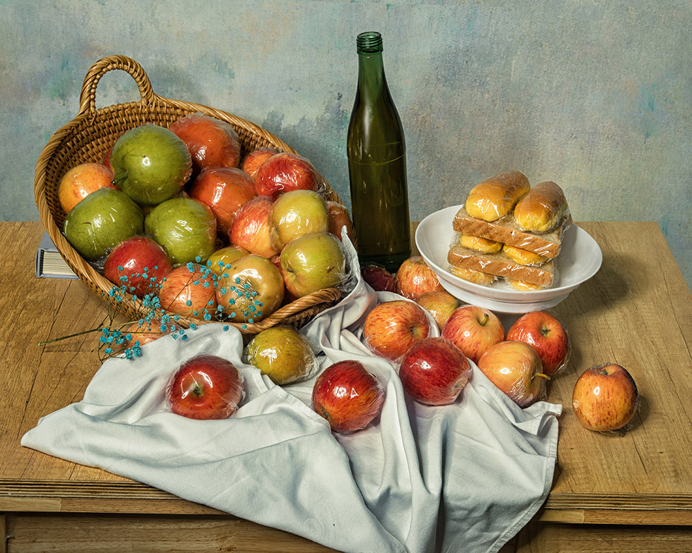 作品介紹: 《致敬塞尚》以被譽(yù)為“現(xiàn)代繪畫之父”的法國后印象主義畫派代表人物保羅.塞尚的經(jīng)典作品為背景,通過聚焦還原塞尚經(jīng)典靜物佳作,圍繞當(dāng)今社會熱點(diǎn)和全球關(guān)注的有關(guān)塑料污染和食品安全問題,將當(dāng)代元素融入傳統(tǒng)畫作,通過攝影的手段在藝術(shù)及表達(dá)上做些探索,賦予傳統(tǒng)油畫作品新的生命力。