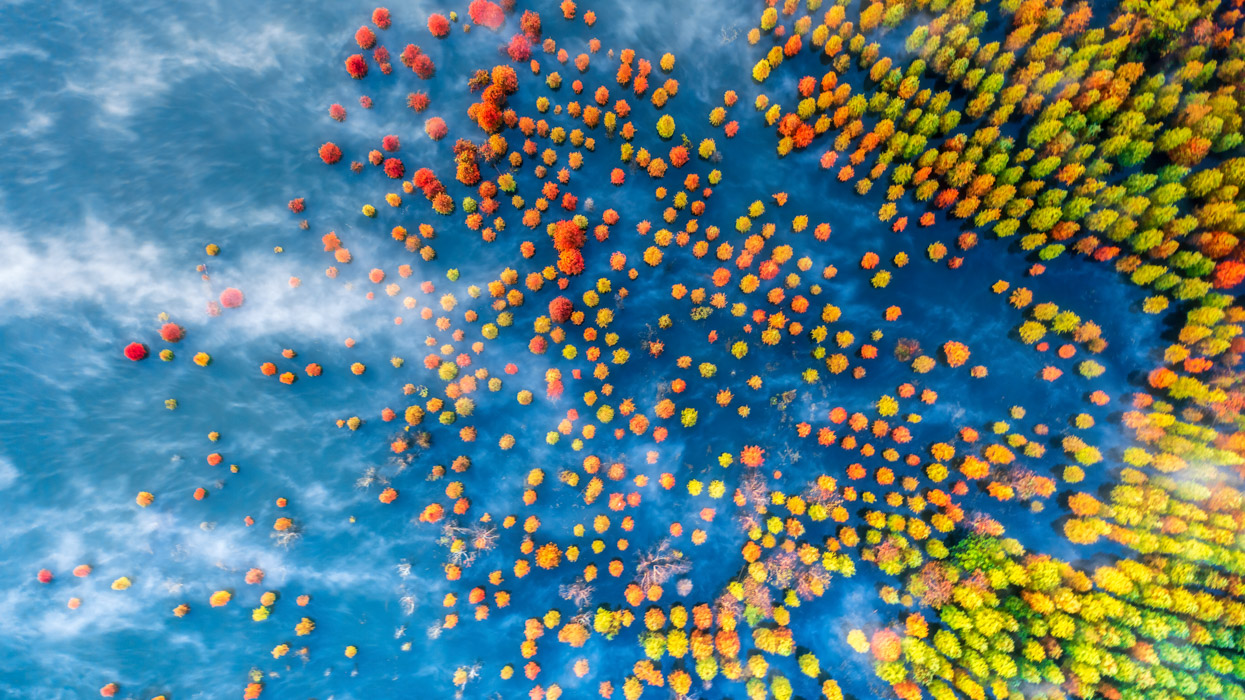 作品介紹: 2021年11月24日,臺(tái)州市黃巖區(qū)北洋鎮(zhèn)長(zhǎng)潭水庫(kù)邊的水杉林在晨霧的襯托下如夢(mèng)如幻。