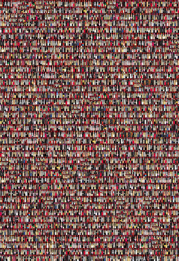 《消費(fèi)的圖像》這組作品我將具有“消費(fèi)”屬性的商品圖像進(jìn)行隨機(jī)、無序的堆疊,采用這種類似強(qiáng)迫癥的機(jī)械重復(fù)拼貼,用電腦拼貼完成。一個(gè)個(gè)的商品圖像經(jīng)過拼貼,產(chǎn)生了一種新的陌生形態(tài),這些本來屬性為廣告宣傳的圖像經(jīng)過加工處理,成為我對(duì)時(shí)代特征的獨(dú)特感受。