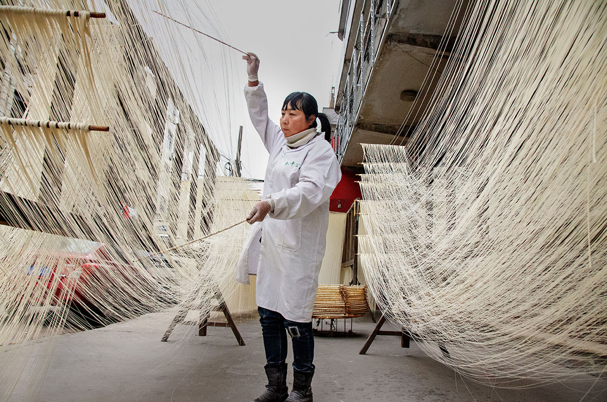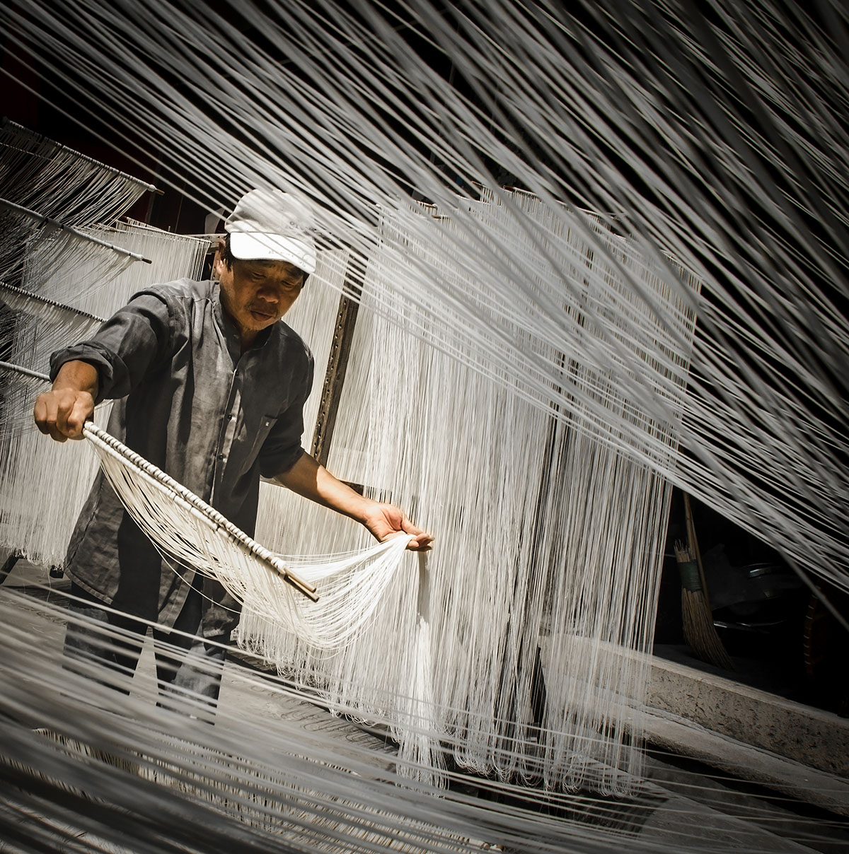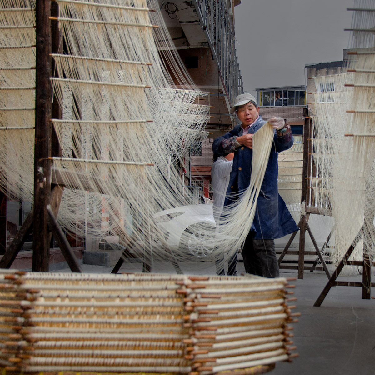 索面是溫嶺箬山特有的咸面,是由精制面粉加適量食鹽,經(jīng)過拌和發(fā)酵、抽拉、曬干等純手工工藝,制成細如銀絲、潔白柔軟的面干。索面是吉利、高貴、幸福、長壽的象征。