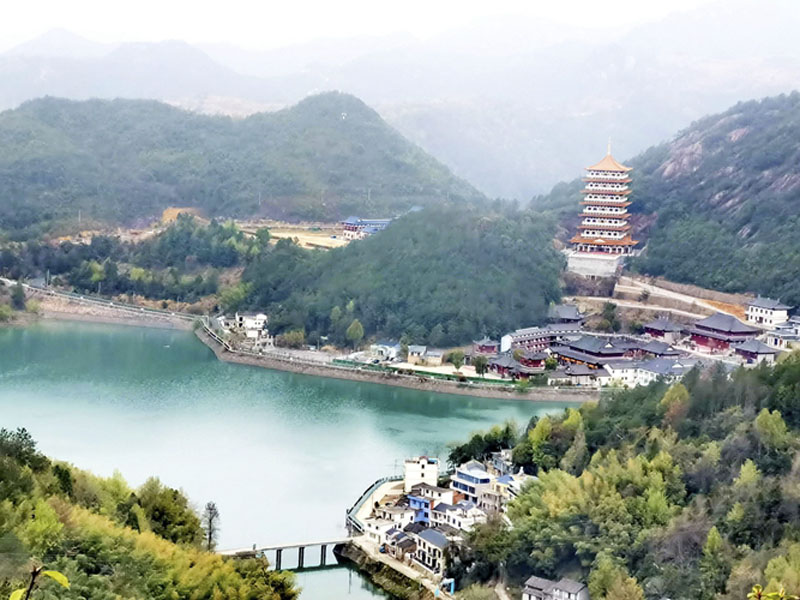 《晨霧中觀賞桐柏宮的秀美》