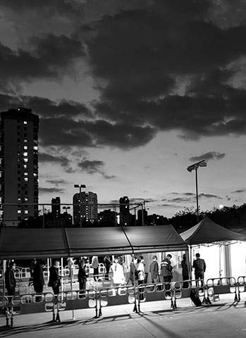作品介紹: 2022年是新冠疫情防控的最后一年,人們?cè)谇靶兄械却诘却星靶校窘M照片記錄了這最后一年椒江市區(qū)核酸檢測(cè)點(diǎn)的一些景象。