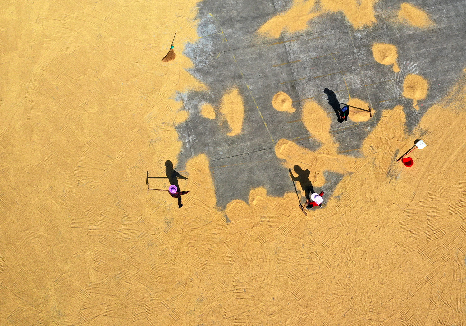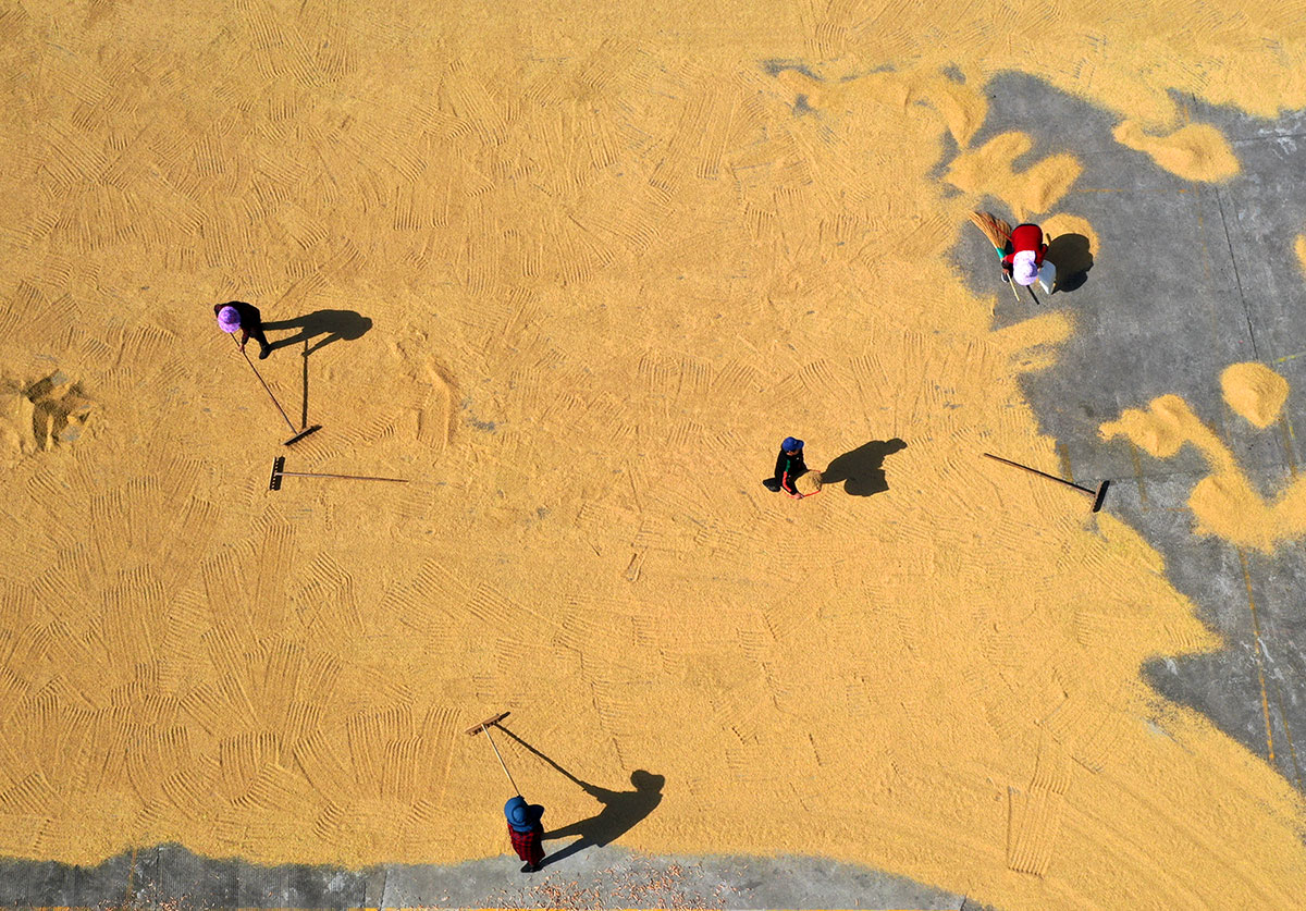 金秋時節(jié),溫嶺市晚稻喜獲豐收,農(nóng)民在曬谷場上晾曬稻谷,仿佛在演奏一首豐收曲。