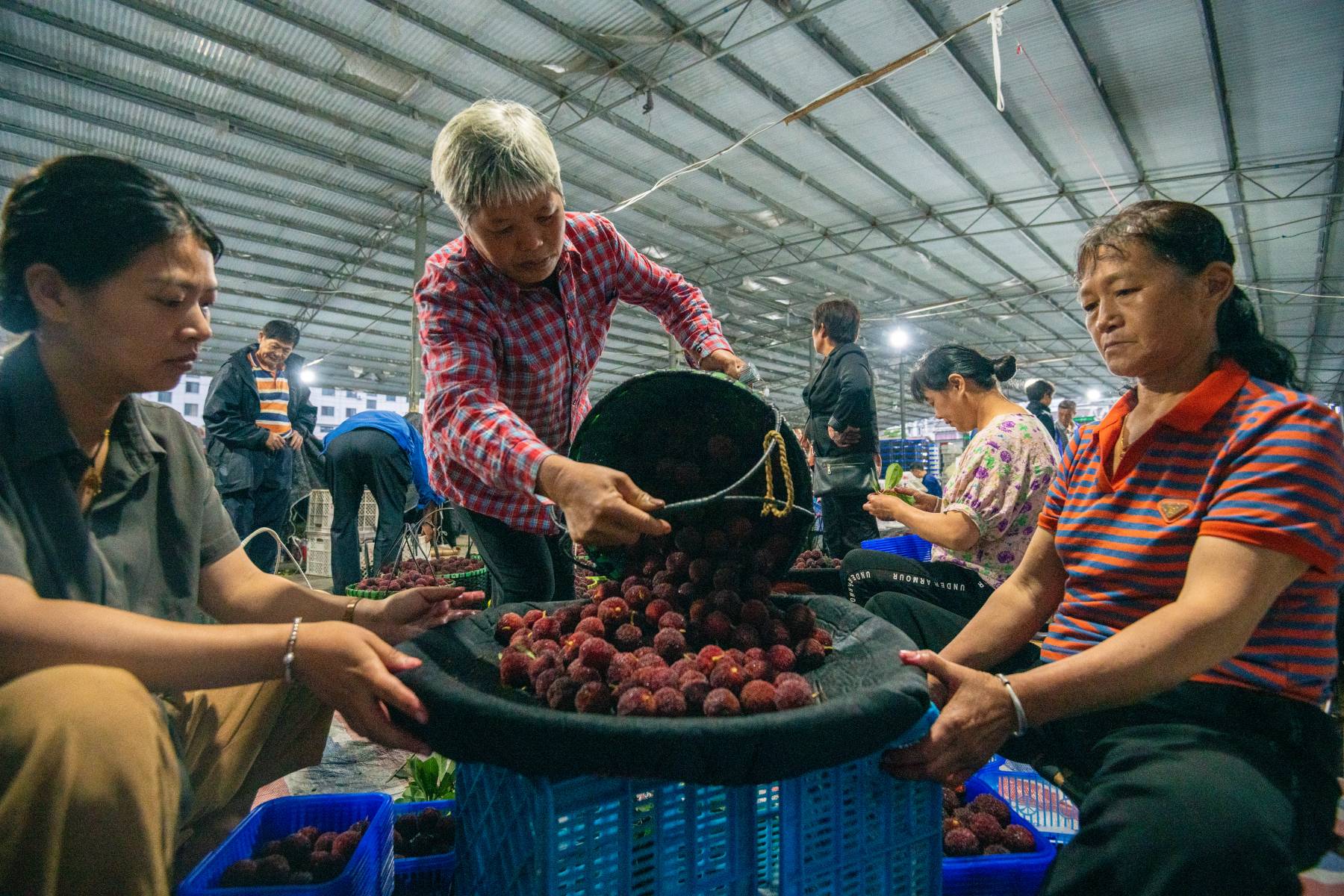 清晨2點多,永豐鎮(zhèn)楊梅市場上就開始燈火通明,陸續(xù)就有梅農把采摘的楊梅帶到市場上銷售,楊梅的加工,轉運能持續(xù)到午后。小鎮(zhèn)堅持黨建引領振興鄉(xiāng)村經濟,積極探索帶富模式,建立了集生產、加工、銷售一條龍的楊梅產業(yè)化經營模式,帶動了特產農產品展銷,搭建了老百姓家門口的產業(yè)共富體系。
