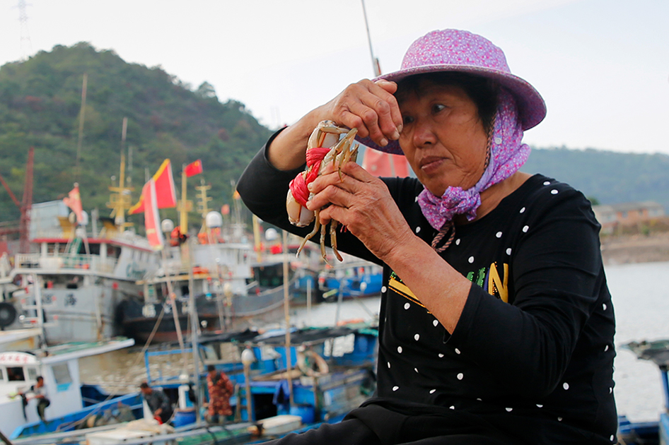 用傳統(tǒng)經(jīng)驗方式,檢驗青蟹質(zhì)量和瘦肥程度。
