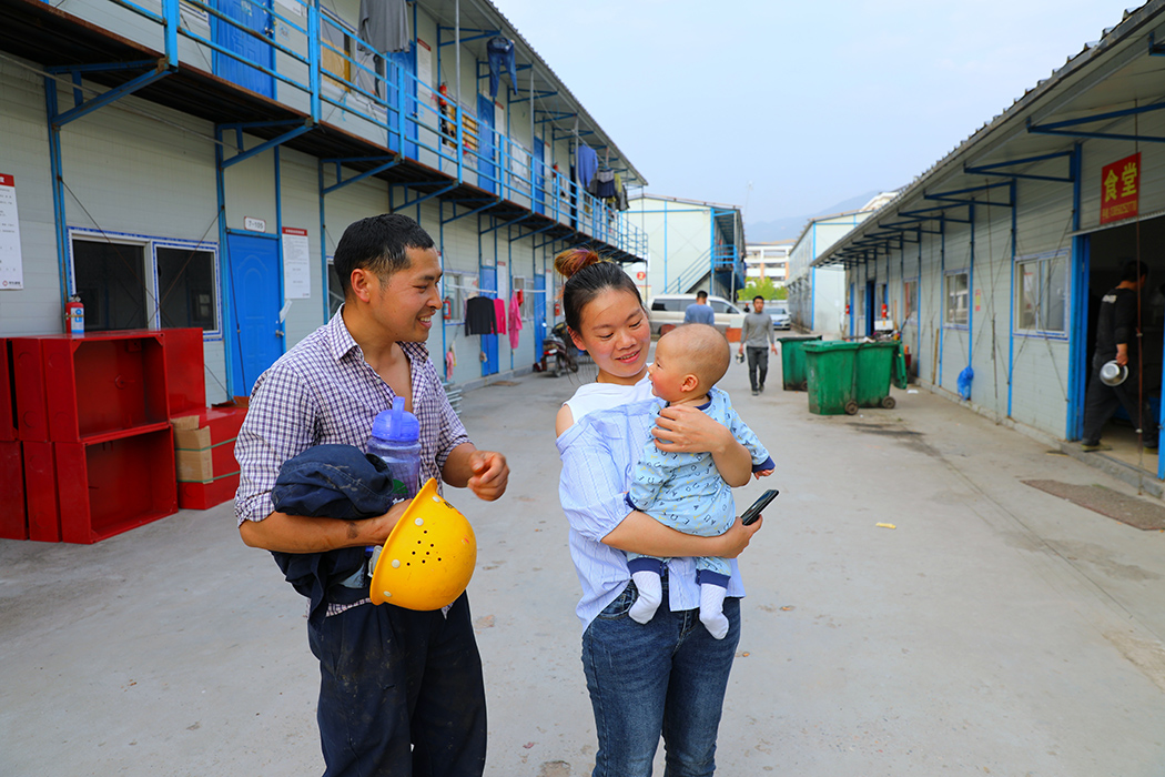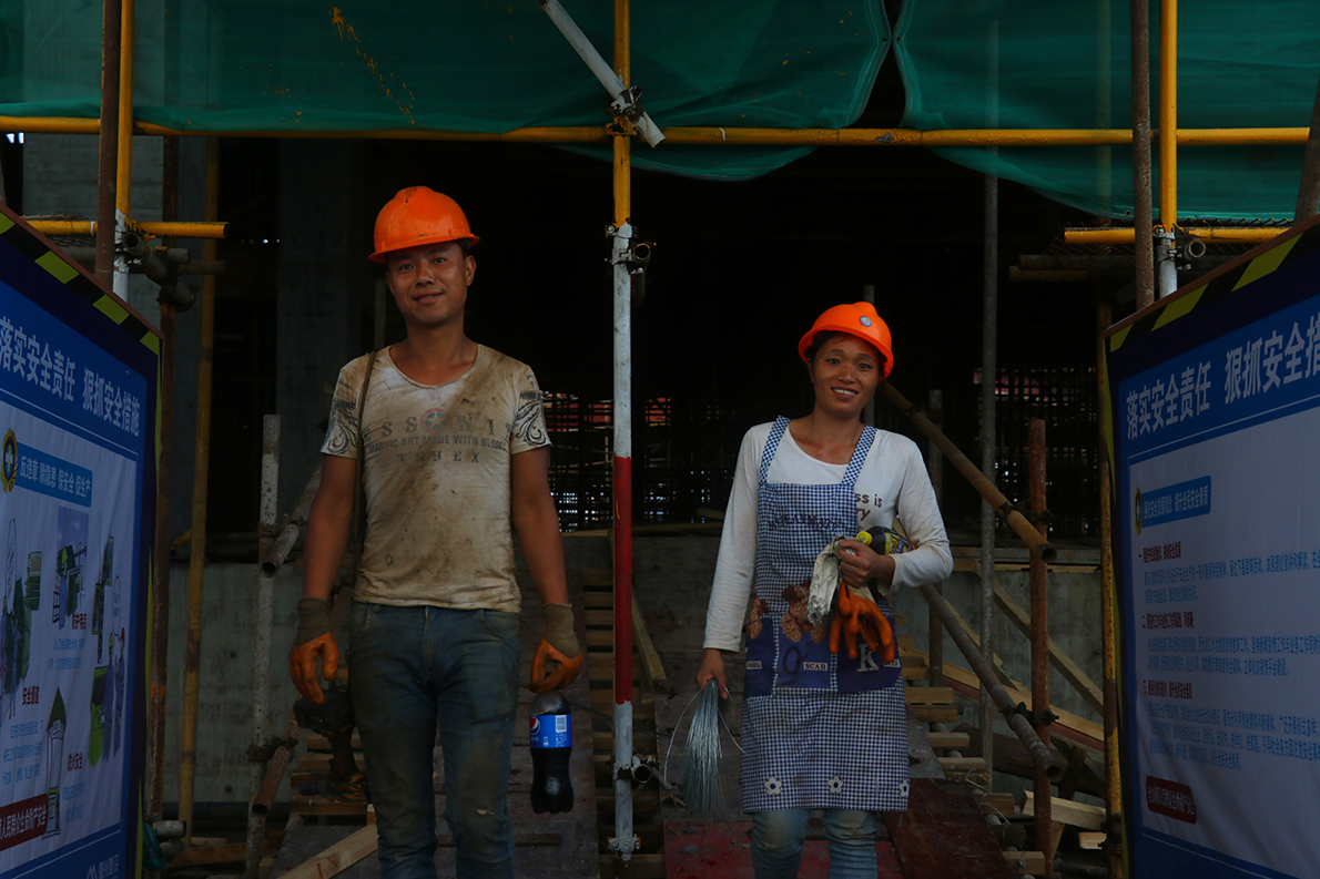 返回頂部>> 照片說(shuō)明: 9.2018年8月18日下午17點(diǎn)57分,一對(duì)貴州籍夫妻工地下班后走在回宿舍的路上。
