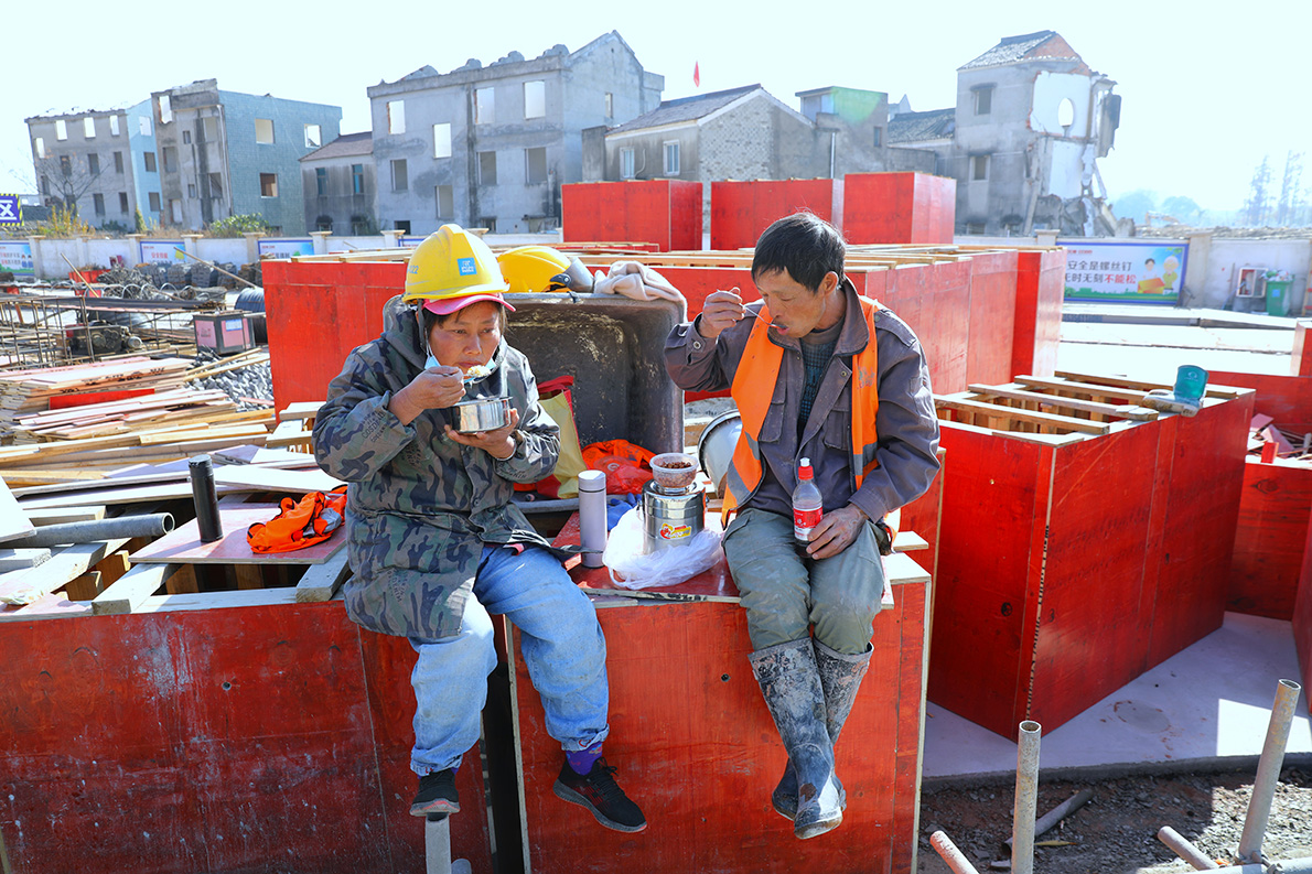 返回頂部>> 照片說(shuō)明: 6.2020年12月22日中午11點(diǎn)13分,一對(duì)重慶籍中年夫妻為了節(jié)省吃飯時(shí)間多干點(diǎn)活,坐在工地里吃早上在工棚里做好帶來(lái)的蛋炒飯。