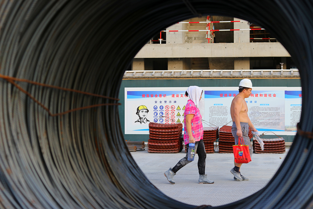 返回頂部>> 照片說(shuō)明: 7.2018年8月11日下午15點(diǎn)15分,新城某工地上,一對(duì)鋼筋工夫妻在烈日下配合作業(yè)。