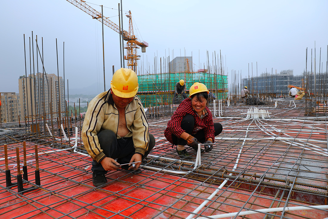 返回頂部>> 照片說(shuō)明: 3.2020年5月5日上午7點(diǎn)29分,天臺(tái)新城某工地,一對(duì)安徽籍民工夫妻邊箍鋼筋,邊說(shuō)笑著家事。