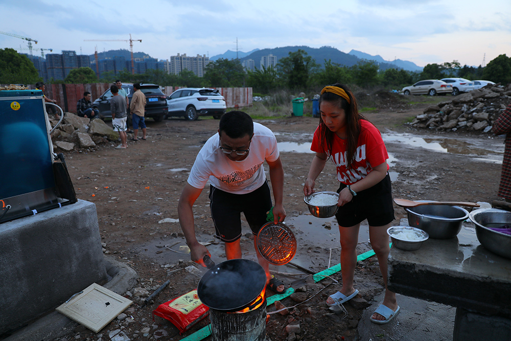 返回頂部>> 照片說(shuō)明: 10.2024年4月23日傍晚18點(diǎn)44分,一對(duì)云南籍90后夫妻下班后回到工棚,由于工棚戶區(qū)內(nèi)禁止用電用火燒飯,夫妻倆在工棚區(qū)大門口臨時(shí)搭起火爐,一起做晚飯。