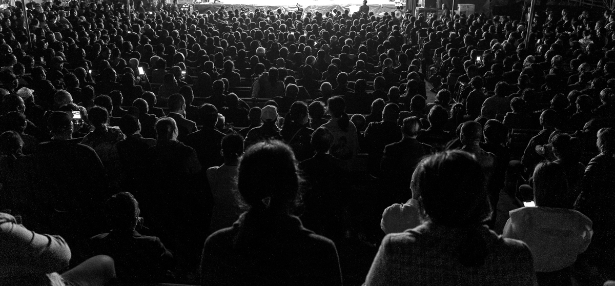 鄉(xiāng)村里來了戲班子,村里老老少少早早占據(jù)有利位置前來看戲,